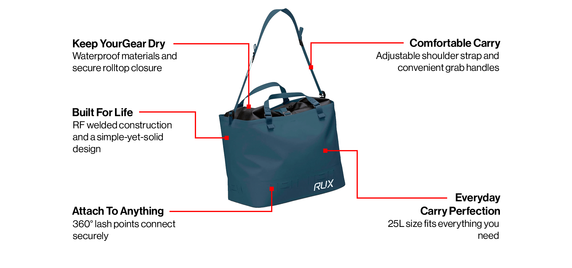 La forme suit la fonction, et l'extérieur profilé du sac étanche facilite plus que jamais le transport et la protection d'une tonne d'équipement sans avoir l'air technique ou trop dur.