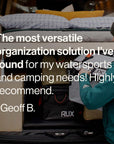 Uncover the full potential of the RUX system and enjoy savings with this exclusive bundle: the original RUX 70L, 2x 25L RUX Bags, 2x 3L RUX Pockets, and two sets of RUX Utility Straps.