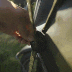Using the Utility Straps, there are several ways to secure your RUX 70L to something, or vice versa. At the top: the straps fit precisely through the slots in the Utility Rails on a RUX 70L, so you can lash it to a rack, or attach say a hatchet or other piece of gear to the upper exterior or interior of your RUX 70L. At the bottom: there are lashpoints (slots) around the lower circumference of the bag, yielding numerous places to thread the Utility Straps.